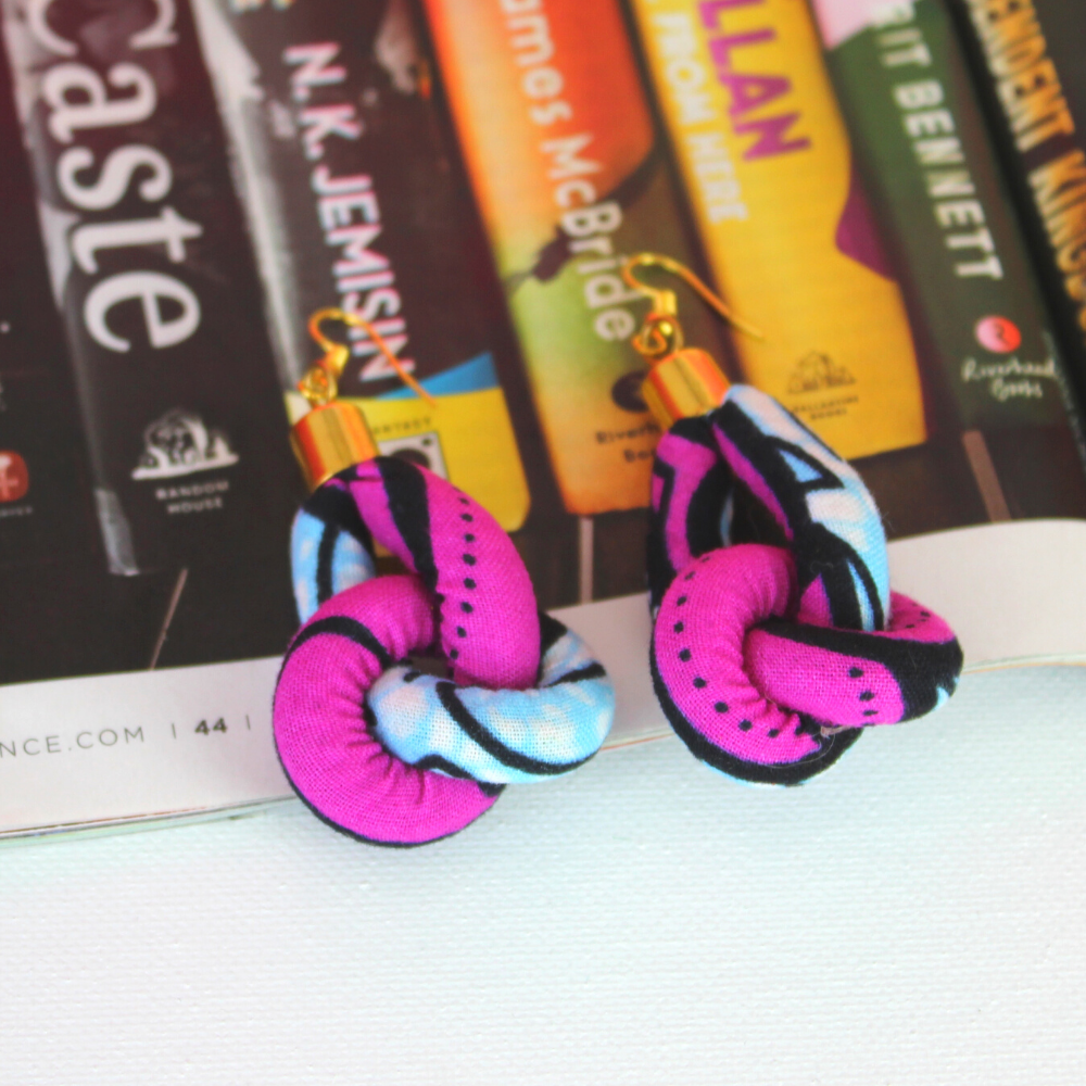 Have a love of purple then you are going to love this mix of purple and light blue mix that will definitely turn heads. This African inspired knot dangler is truly unique and it's not something you will see anywhere else. If you like being unique and having one of a kind earrings then you will want to get these and have them asking where you got these.