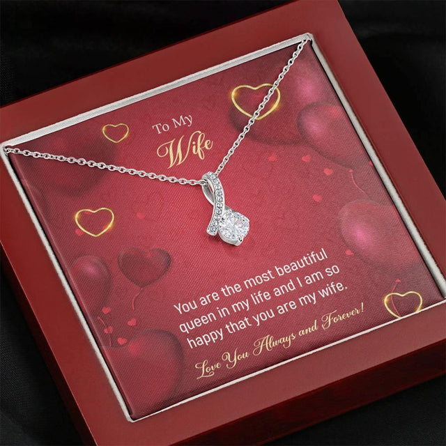 • Melt her heart with this ALLURING BEAUTY necklace gift! The petite ribbon shaped pendant is finished with 14K white gold over stainless steel, and is embellished with dainty clear crystals surrounded by a sparkling 7mm round cut Cubic Zirconia.